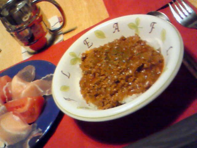 普通のミートソースを作ってご飯に乗せて食べるメニューなんだけど、これが結構美味しいの!