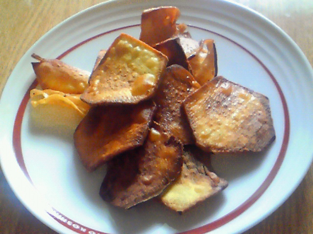 さつまいもを薄く切ってオサツチップス作りました。