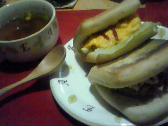 朝食はサンドパン。