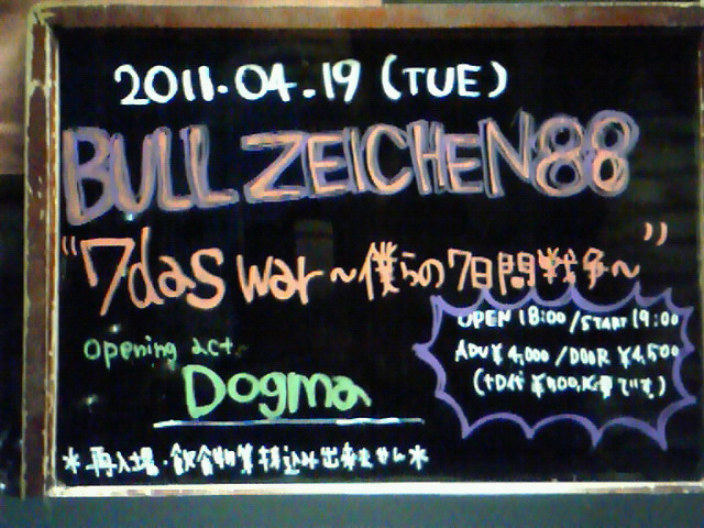 今回『BULLZEICHEN88』というバンドのワンマンで、そのアクトを『Dogma』がつとめました。