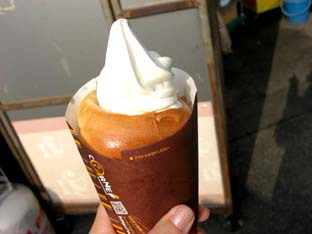 揚げ立てのコルネパンに冷たくて濃いソフトクリームが入っちゃってるの。