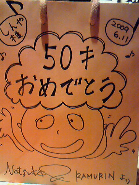 袋に書いた似顔絵(笑)