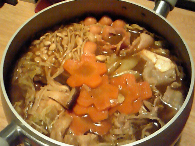 でもうちには土鍋が無いので、すき焼き用鍋でやろうと思ったら、どこにしまったかわからなくなっちゃったので、普通のお鍋で作りました(笑)